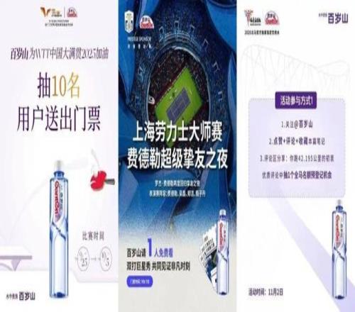 與多個賽事由合作的百歲山常有門票、馬拉松名額抽獎活動