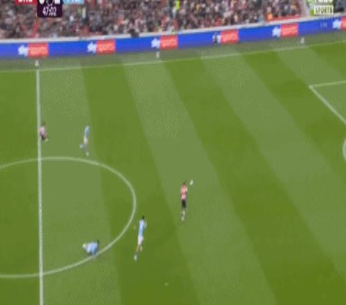 第89分鐘,多納魯馬后場玩火,大腳解圍擊中沙德的身體,差點反彈進自家球門,曼城逃過一劫。