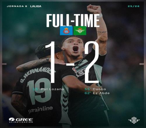 雷速體育10月6日宣 由于普阿多讀秒點球罰丟,貝蒂斯最終在客場2-1頑強逆轉(zhuǎn)西班牙人,豪取西甲三連勝。