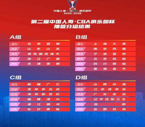 第二屆中國人壽CBA俱樂部杯抽簽分組結(jié)果出爐