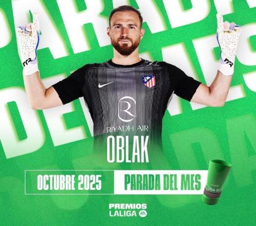 官方消息,馬競門將奧布拉克對陣奧薩蘇納的近距離撲救當(dāng)選西甲10月最佳撲救。